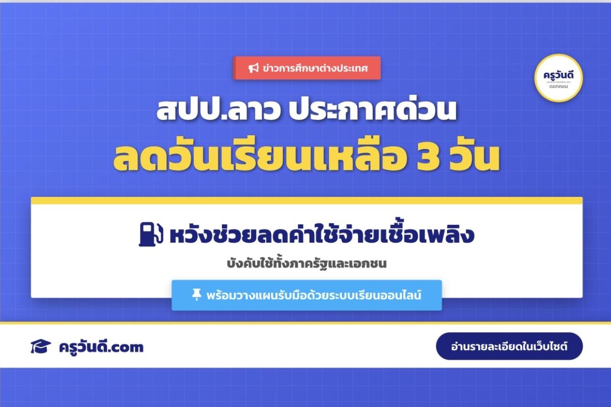 โดยมาตรการดังกล่าวเป็นส่วนหนึ่งของการรับมือกับสถานการณ์ฉุกเฉิน เพื่อบรรเทาแรงกดดันทางการเงินของครอบครัวท่ามกลางภาวะราคาเชื้อเพลิงที่ผันผวนอย่างรุนแรง อย่างไรก็ตาม ทางการลาวยืนยันว่าจะยังคงรักษามาตรฐานทางวิชาการตามหลักสูตรไว้อย่างเคร่งครัด โดยจะใช้วิธีการขยายปฏิทินปีการศึกษาออกไปเพื่อชดเชยเวลาเรียนที่หายไปครับ