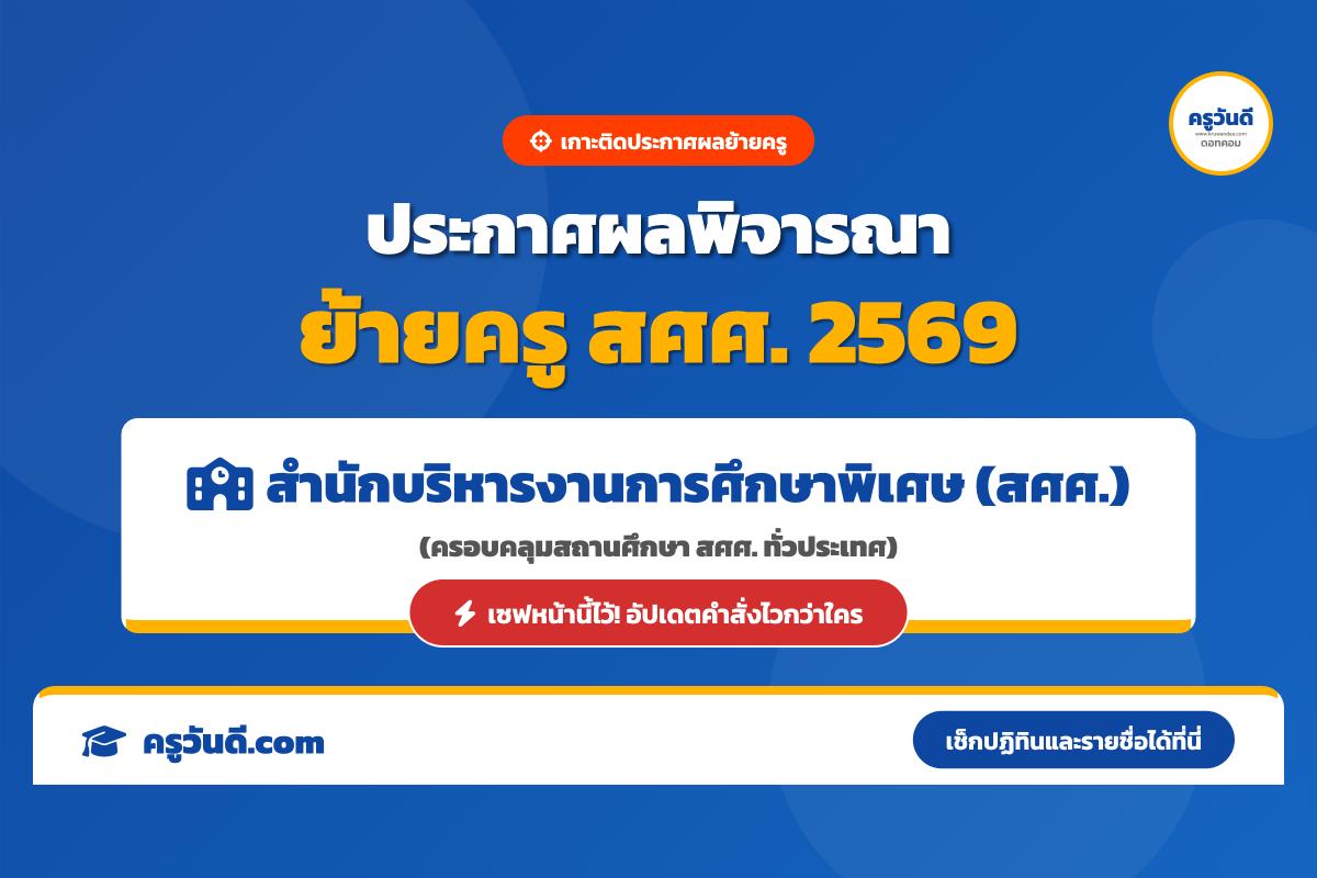เกาะติด ประกาศผลพิจารณาย้ายครู 2569 สำนักบริหารงานการศึกษาพิเศษ (สศศ.)