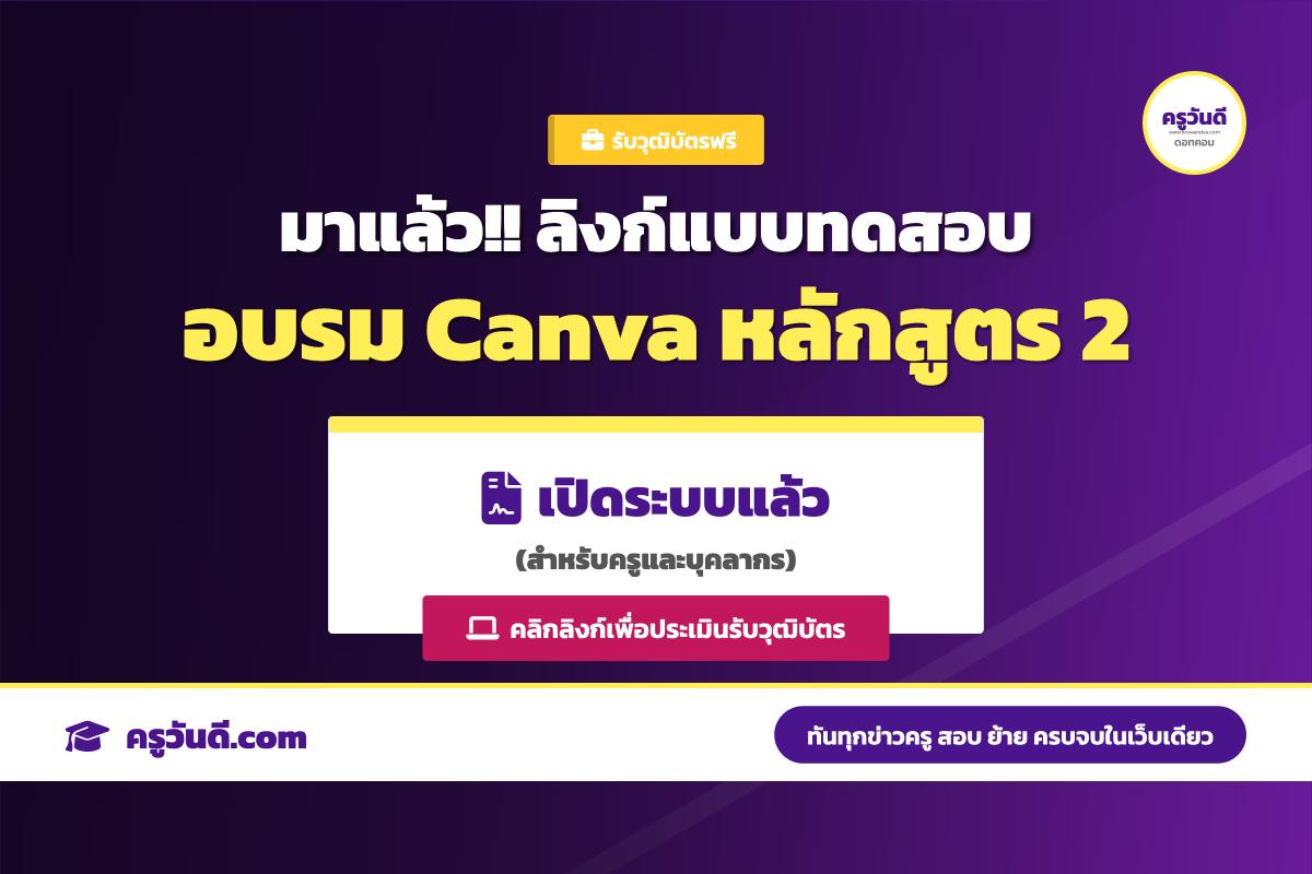ด่วน! ลิงก์ทำแบบทดสอบรับวุฒิบัตร อบรมออนไลน์ สพฐ. หลักสูตรที่ 2 พลิกงานสอนด้วย Canva