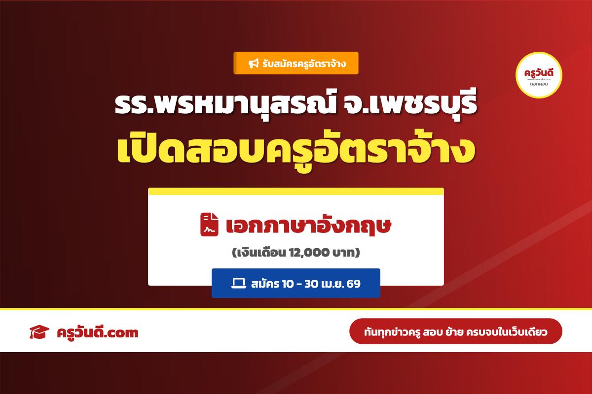 วุฒิ ป.ตรี ห้ามพลาด! รร.พรหมานุสรณ์ จ.เพชรบุรี เปิดสอบครูเอกภาษาอังกฤษ (สมัคร 10-30 เม.ย. 69)