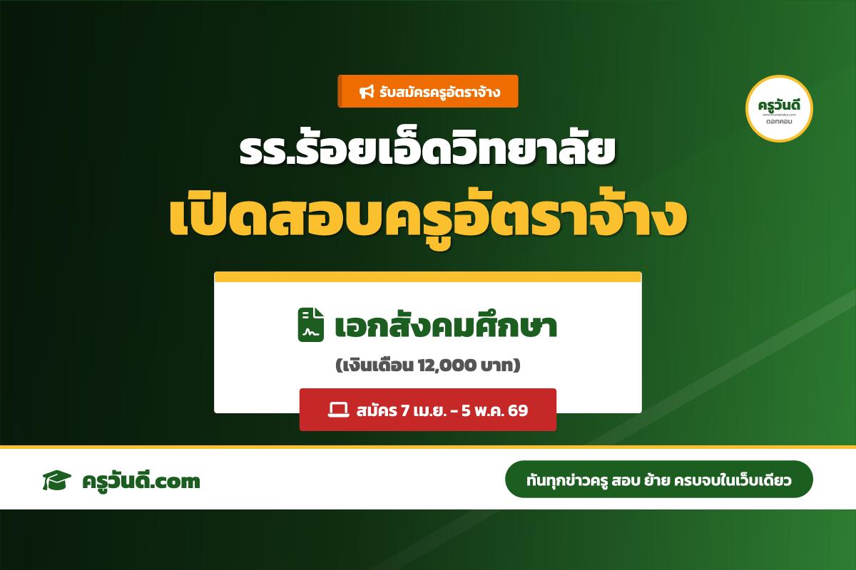 วุฒิ ป.ตรี ห้ามพลาด! รร.ร้อยเอ็ดวิทยาลัย เปิดสอบครูสังคม ไม่มีใบประกอบฯ ก็สมัครได้ (สมัคร 7 เม.ย.-5 พ.ค. 69)