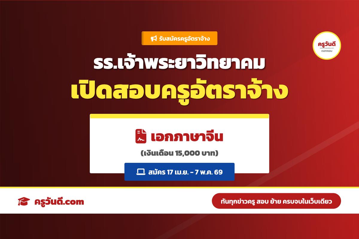 วุฒิ ป.ตรี ห้ามพลาด! รร.เจ้าพระยาวิทยาคม เปิดสอบครูภาษาจีน เงินเดือน 15,000 บ. (สมัคร 17 เม.ย. - 7 พ.ค. 69)