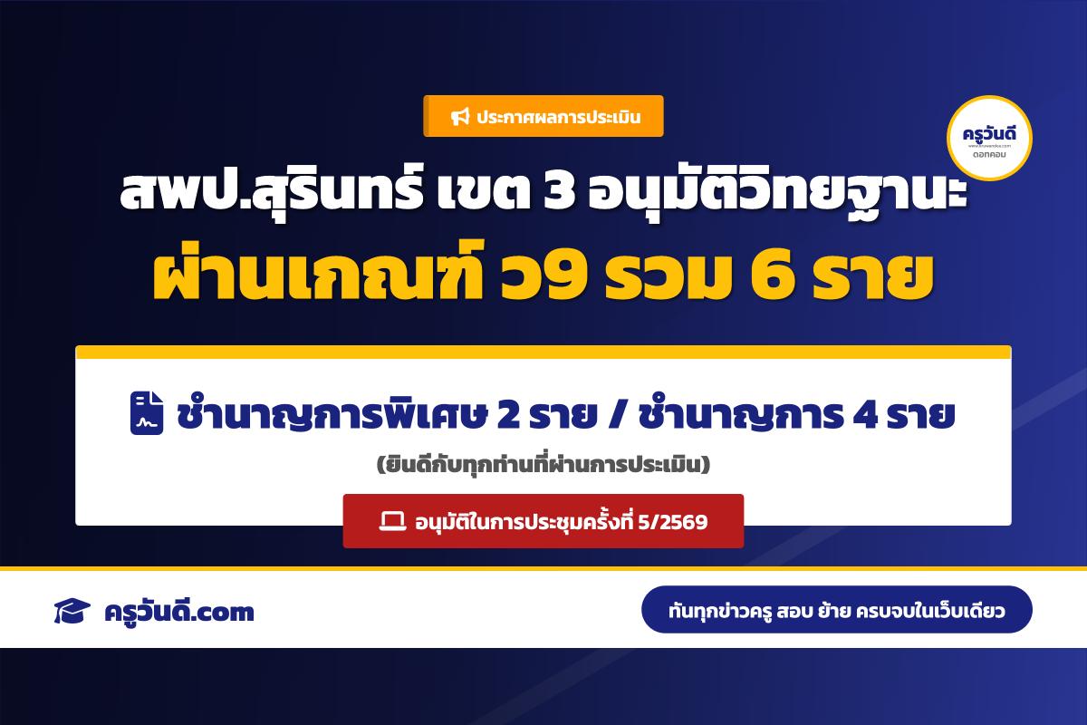 อ.ก.ค.ศ. สพป.สุรินทร์ เขต 3 อนุมัติผลประเมินวิทยฐานะ (ว9/2564) ผ่านเกณฑ์ 6 ราย