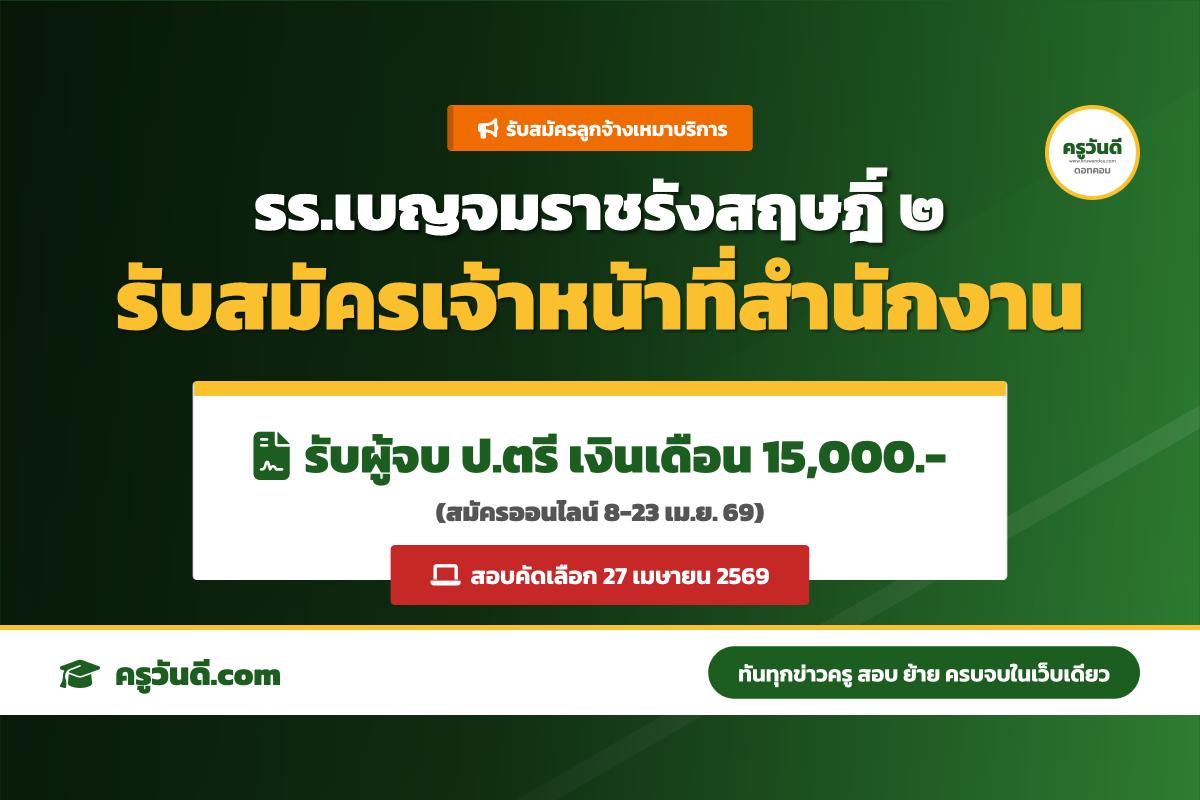 โรงเรียนเบญจมราชรังสฤษฎิ์ ๒ รับสมัครลูกจ้างเหมาบริการ ตำแหน่งเจ้าหน้าที่สำนักงาน เงินเดือน 15,000 บาท (8-23 เม.ย. 69)