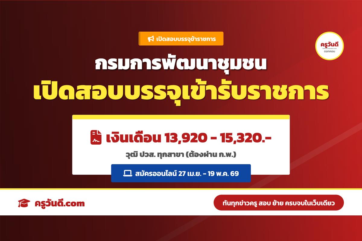 กรมการพัฒนาชุมชน รับสมัครสอบบรรจุข้าราชการ 14 อัตรา (27 เม.ย. - 19 พ.ค. 69)