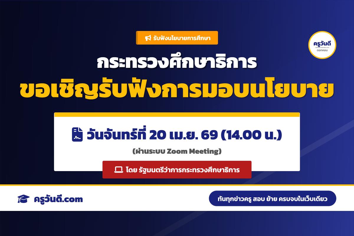 กระทรวงศึกษาธิการ ขอเชิญรับฟังการมอบนโยบายการศึกษา ผ่าน Zoom (20 เม.ย. 69)