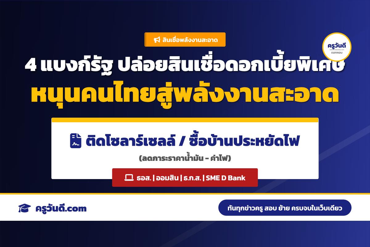 4 แบงก์รัฐ ออกมาตรการสินเชื่อดอกเบี้ยพิเศษ หนุนใช้พลังงานสะอาด ลดภาระค่าใช้จ่าย