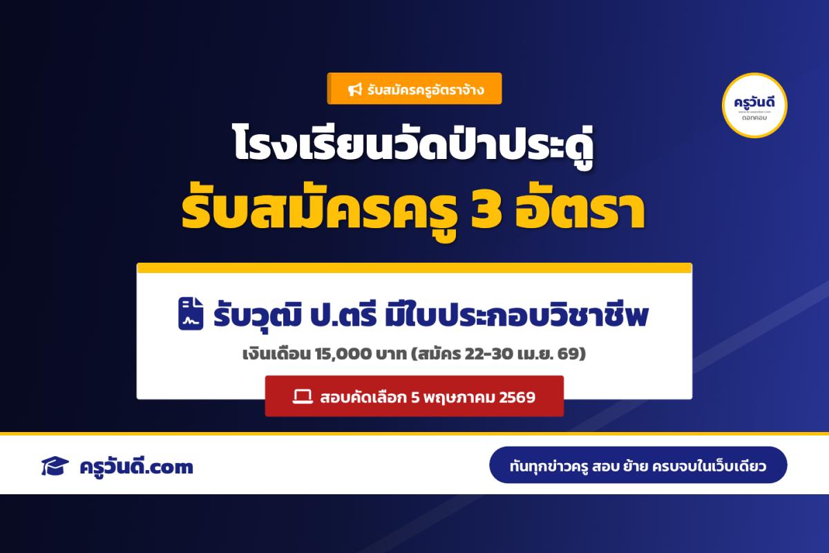 โรงเรียนวัดป่าประดู่ จ.ระยอง รับสมัครครูอัตราจ้าง 3 อัตรา เงินเดือน 15,000 บาท (22-30 เม.ย. 69)