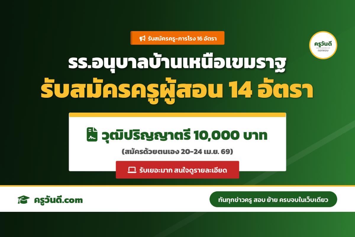 โรงเรียนอนุบาลบ้านเหนือเขมราฐ รับสมัครครูอัตราจ้างและนักการภารโรง 16 อัตรา (20-24 เม.ย. 69)