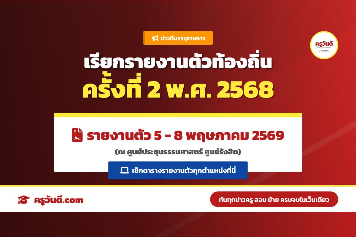 ด่วน! ประกาศบัญชีเรียกรายงานตัวพนักงานส่วนท้องถิ่น 2568 ครั้งที่ 2 รายงานตัว 5-8 พฤษภาคม 2569