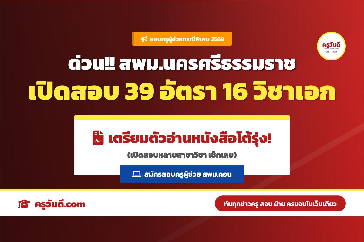 ด่วน! สพม.นครศรีธรรมราช เปิดสอบครูผู้ช่วยกรณีพิเศษ ปี 2569 รวม 39 อัตรา จาก 16 สาขาวิชาเอก