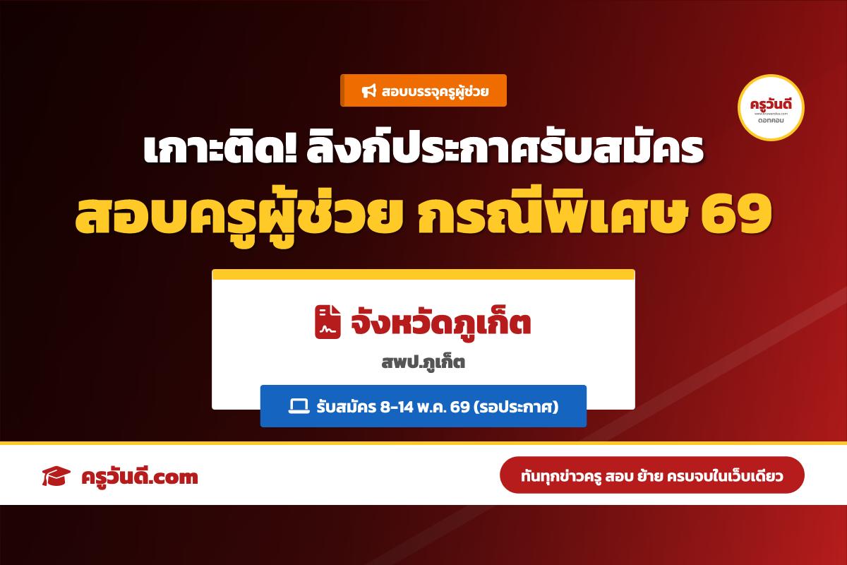 เกาะติด! ลิงก์ประกาศรับสมัครสอบครูผู้ช่วย กรณีพิเศษ จังหวัดภูเก็ต ปี 2569 (รับสมัคร 8-14 พ.ค. 69)