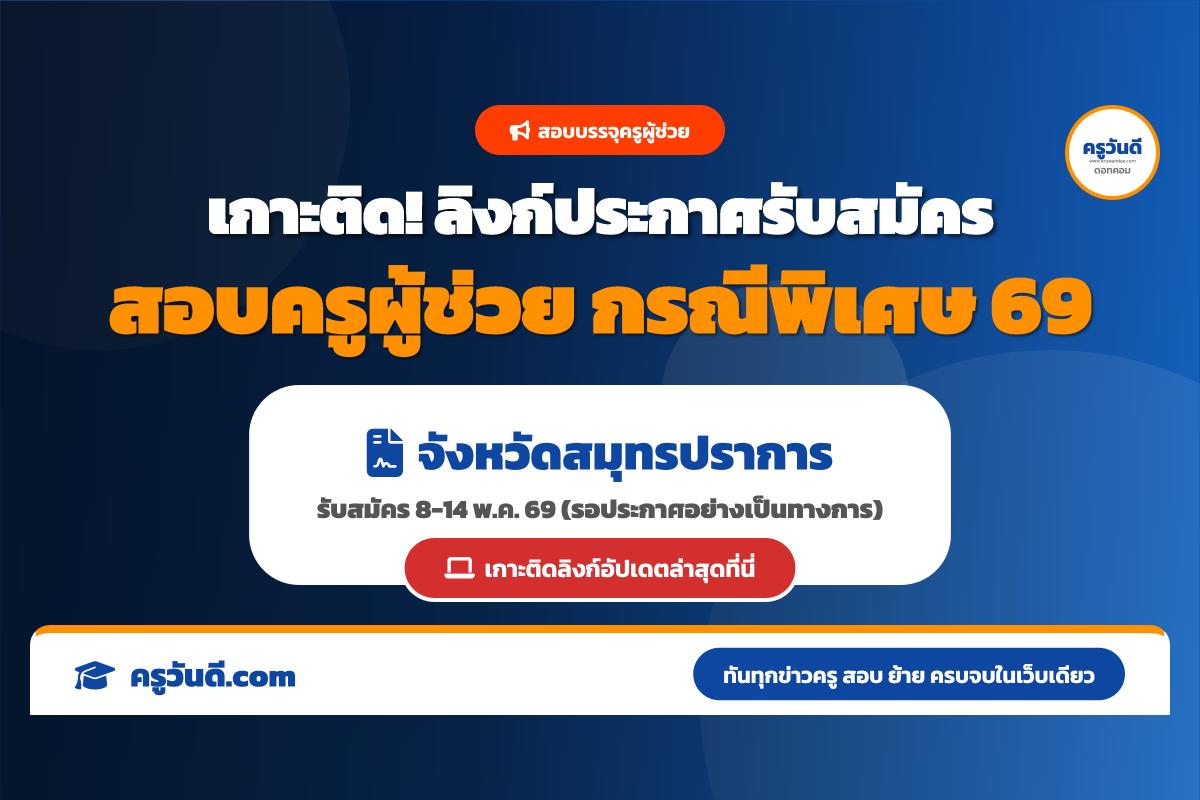เกาะติด! ลิงก์ประกาศรับสมัครสอบครูผู้ช่วย กรณีพิเศษ จังหวัดสมุทรปราการ ปี 2569 (รับสมัคร 8-14 พ.ค. 69)