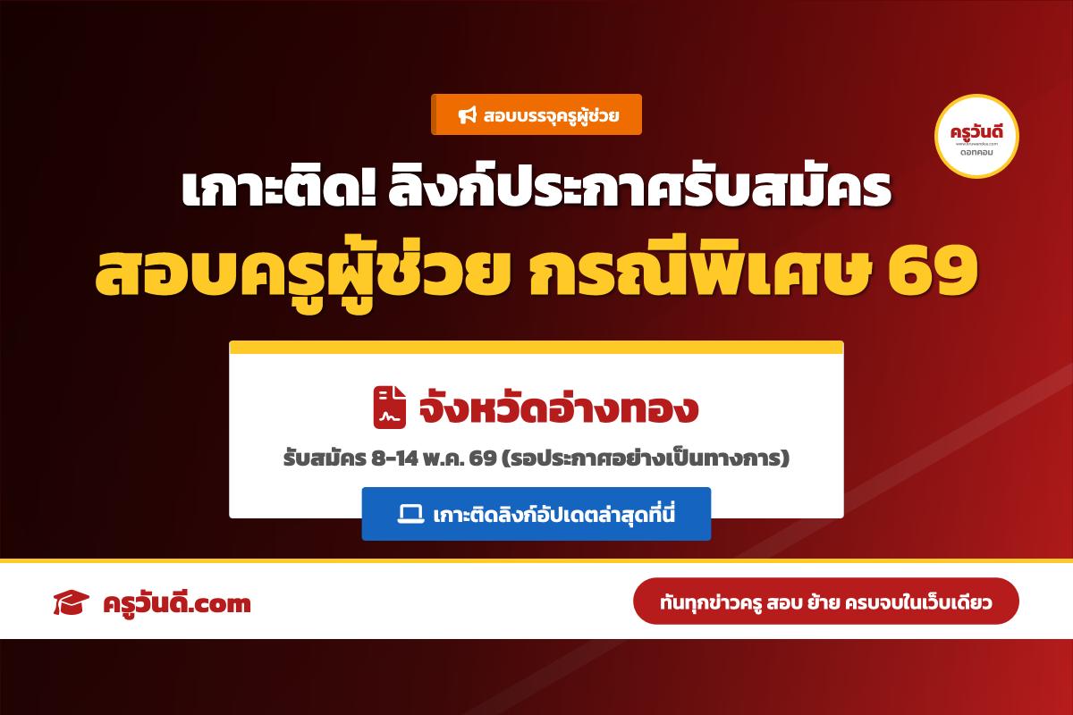 เกาะติด! ลิงก์ประกาศรับสมัครสอบครูผู้ช่วย กรณีพิเศษ จังหวัดอ่างทอง ปี 2569 (รับสมัคร 8-14 พ.ค. 69)