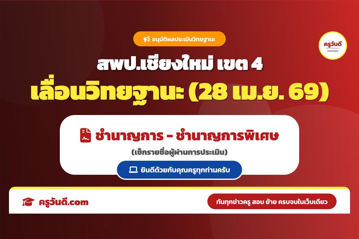 มติ อ.ก.ค.ศ. สพป.เชียงใหม่ เขต 4 อนุมัติผลการประเมินวิทยฐานะครูและบุคลากรทางการศึกษา (28 เม.ย. 69)
