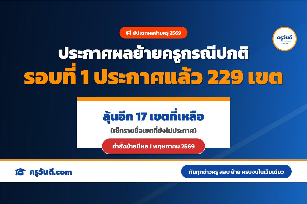 อัปเดตล่าสุด ประกาศผลย้ายครูกรณีปกติ ประจำปี 2569 รอบที่ 1 (ประกาศแล้ว 229 เขต)